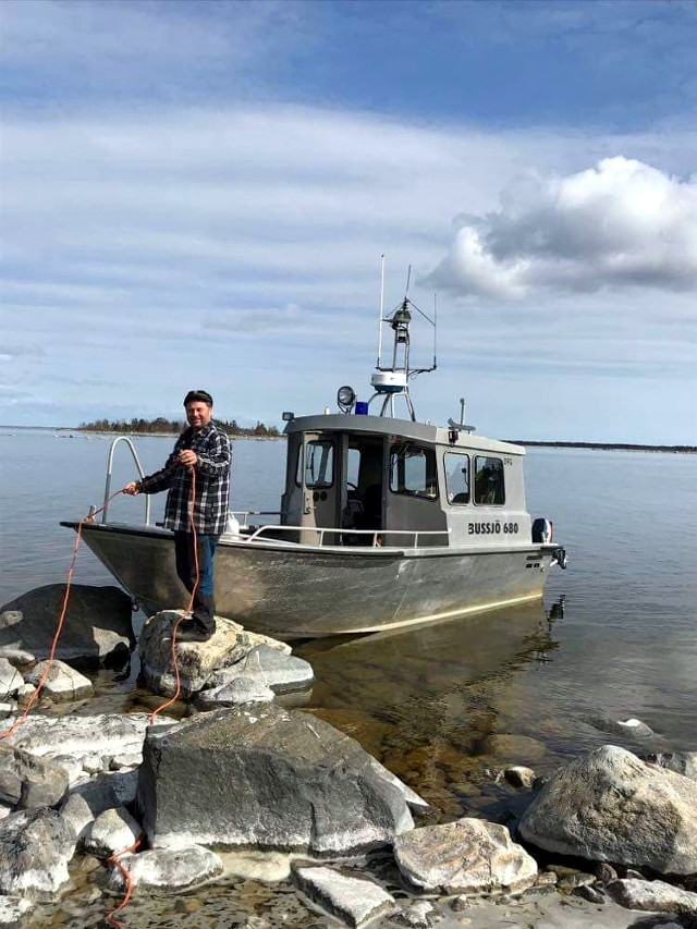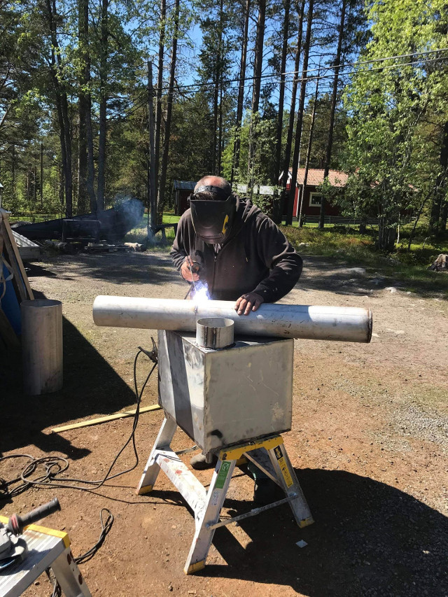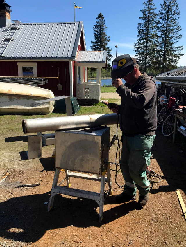 2020-06-05. Så är det bara att "flytta" in på Gaddbödan (Nordväst på norra Holmögadd) och byns fiskebastu. Nu går det bra att hålla värmen och laga lite mat om så önskas på den rostfria kaminen. Killarna kom just tillbaks in i ett blåsigt Byviken efter sista turen för detta spis uppdrag nere på Gadden. Ett halvt ton bruk, reservelverk, 100 liter sötvatten,flera båtresor, goda vänner till hjälp och väder som varit på vår sida så va de klart.